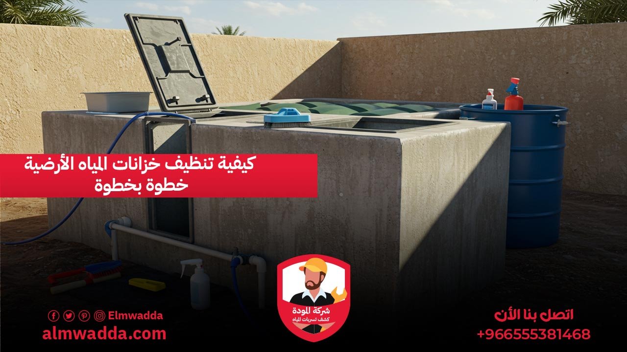 لا تدع الشكوك حول نظافة خزانك تُقلقك. تقدم شركة المودة لكشف تسربات المياه بالرياض خدمة مميزة: احصل على خدمة تنظيف معتمدة لخزانك الأرضي اليوم. سيقوم فريقنا من الفنيين المدربين بزيارة موقعك، وإجراء عملية تنظيف شاملة للخزان باستخدام أحدث الأدوات والمواد المطهرة الآمنة، مع الالتزام بأعلى معايير النظافة والجودة. هذه فرصتك لضمان مياه نظيفة وصحية لك ولأسرتك، اتصل بنا اليوم!